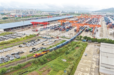 9月13日,满载汽车零配件、笔记本电脑等货物的中亚班列在重庆团结村中心站发车。