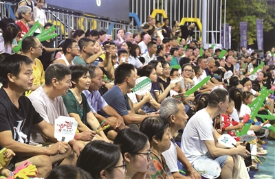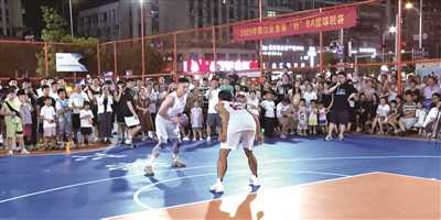 8月28日晚,龙游县湖镇镇东方运动广场人声鼎沸,第三届湖镇杯“村BA”篮球赛总决赛火热开赛,近千名观众坐满看台,欢呼声随着每一次投篮、每一次抢断此起彼伏。