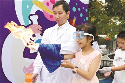 9月21日,柯城区荷花街道荷北苑社区邻里汇民生综合体内热闹非凡,一场以“奇妙科学探险家”为主题的2025年全国科普月科普游园会在此拉开帷幕。百名家长和孩子在科学老师生动的讲解下,沉浸式感受科学的魅力。