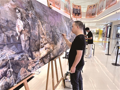 在创作现场,郭创每画几笔便退后审视全局,夏麟则执着于打磨每一处细节。每天五小时以上的站立作画,结束时往往疲惫不堪。“画画时不觉得累,结束后却常说不出话。”他们坦言,这是一场与自我、与历史的沉重对话,情绪起伏与体力消耗常在收笔之后一并袭来。