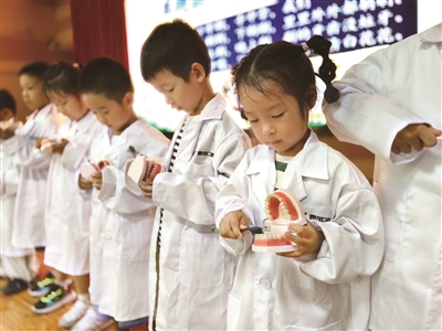 本报讯 (记者 郑理致 通讯员 刘阳健 文/摄) 9月19日,江山市文苑幼儿园为中大班段的孩子们组织了一场“爱牙护齿”健康教育活动。