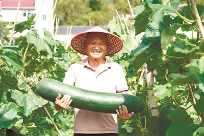 今年,江山市新泉家庭农场在清湖街道泉家垄村承包31亩田地,种植冬瓜。经过精心管理,冬瓜长势喜人,预计亩均产量7500公斤。目前,所产冬瓜已陆续销往上海、杭州、义乌等地市场。图为9月19日,农场负责人刘秋生展示农场丰收的冬瓜。通讯员 严学明 摄
