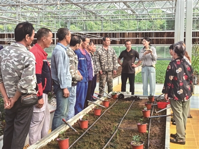 送技跨省际 近日,衢州市农林科学院农艺师王雪艳在常山县白石镇控温控湿智能玻璃大棚为20余名浙赣省际边际村民培训辣椒种植技术。