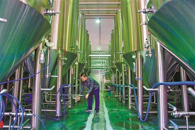 9月23日,在忒斯特酿造(常山)有限公司山茶花西打酒生产车间内,工人正在细心巡查设备运转情况。山茶花西打酒是忒斯特酿造(常山)有限公司一款新产品,由浙江大学-常山县油茶产业联合研究中心研发,去年5月上线生产至今,已售出5万余瓶。目前订单已排至年底。