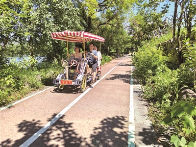 近日,笔者在开化县百里黄金水岸线马金溪音坑乡下淤路段看到,几名游客骑着游览观光车沿着游步道一路游玩,尽情享受乡村的原生态风光。如今,开化县四通八达的“四好农村路”,既带动了乡村旅游,又助力村民吃上了“生态饭”。