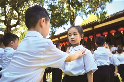 “作揖相见有古风,这种文化浸润太直观了。”来自杭州的家长朱娟全程观摩后感慨道。
