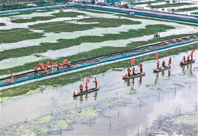 9月26日,“湖州蟹临门大闸蟹开捕节”在浙江省湖州市吴兴区织里镇举行,53家相关大闸蟹养殖企业、200余名蟹农参与此次活动,蟹农通过岸上舞龙巡游、水中划船巡游的方式庆祝大闸蟹开捕。 新华社记者 徐昱 摄