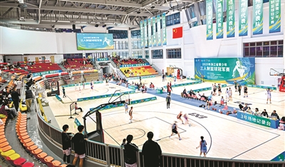 11月12日,2025年浙江省青少年三人制篮球冠军赛在开化县占旭刚体育中心开赛。这是该体育中心建成后承办的首场赛事。