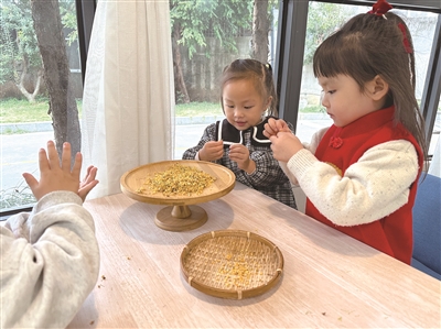本报讯 (记者 郑理致 通讯员 黄雯丽) 金秋时节,衢江区莲花镇中心幼儿园内丹桂飘香,一场以“桂花飘香酿甜蜜”为主题的实践活动正在展开。孩子们在老师的带领下,化身“小小酿造师”,亲身体验从自然探索到美食制作的全过程,在醉人花香与亲手劳作中,品味秋天的独特韵味,收获成长的甜蜜。