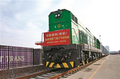 1月21日,中欧班列(西安)“门到门”年货专列开抵西安浐灞国际港爱菊农产品物流加工园区。1月21日,2026年首趟中欧班列(西安)“门到门”年货专列满载着哈萨克斯坦成品粮油、蜂蜜等农产品驶抵西安。已连续开行三年的中欧班列(西安)“门到门”年货专列,实现从国外仓库发运到国内仓库收货的“门到门”运输,既有效提升货物运输效率、降低企业运输成本,又丰富春节市场供应。 新华社记者 李一博 摄