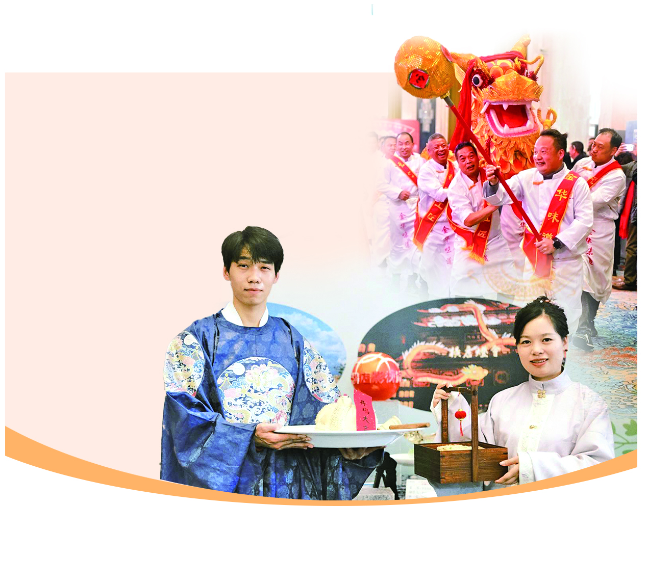 身穿古装的高个小伙井博端着一盘烧鸡从入口菜品拍照处走向东阳展台。“我们的展台以东阳影视为特色,主菜就是这盘‘开鸡大吉’,里面是椒盐叫花鸡,烤了3个多小时。”东阳龙景雷迪森庄园行政总厨范永军分享东阳美食如数家珍。