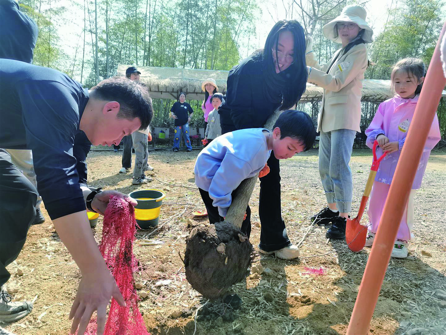 3月2日,金东区竹林谷迎来了一群特殊的“园丁”,由金东区光南社区“有米亲子研学”组织的15户家庭40多名成员齐聚于此,共同参与植树活动,为春天增添一抹新绿。 8岁的李其谚是宾虹小学二年级的学生,当天是他第一次参加植树活动。作为一名中印混血儿,他希望自己种下的树苗能够长得又高又大,像卫士一样守护着环境。 本报记者 余震东 文/摄