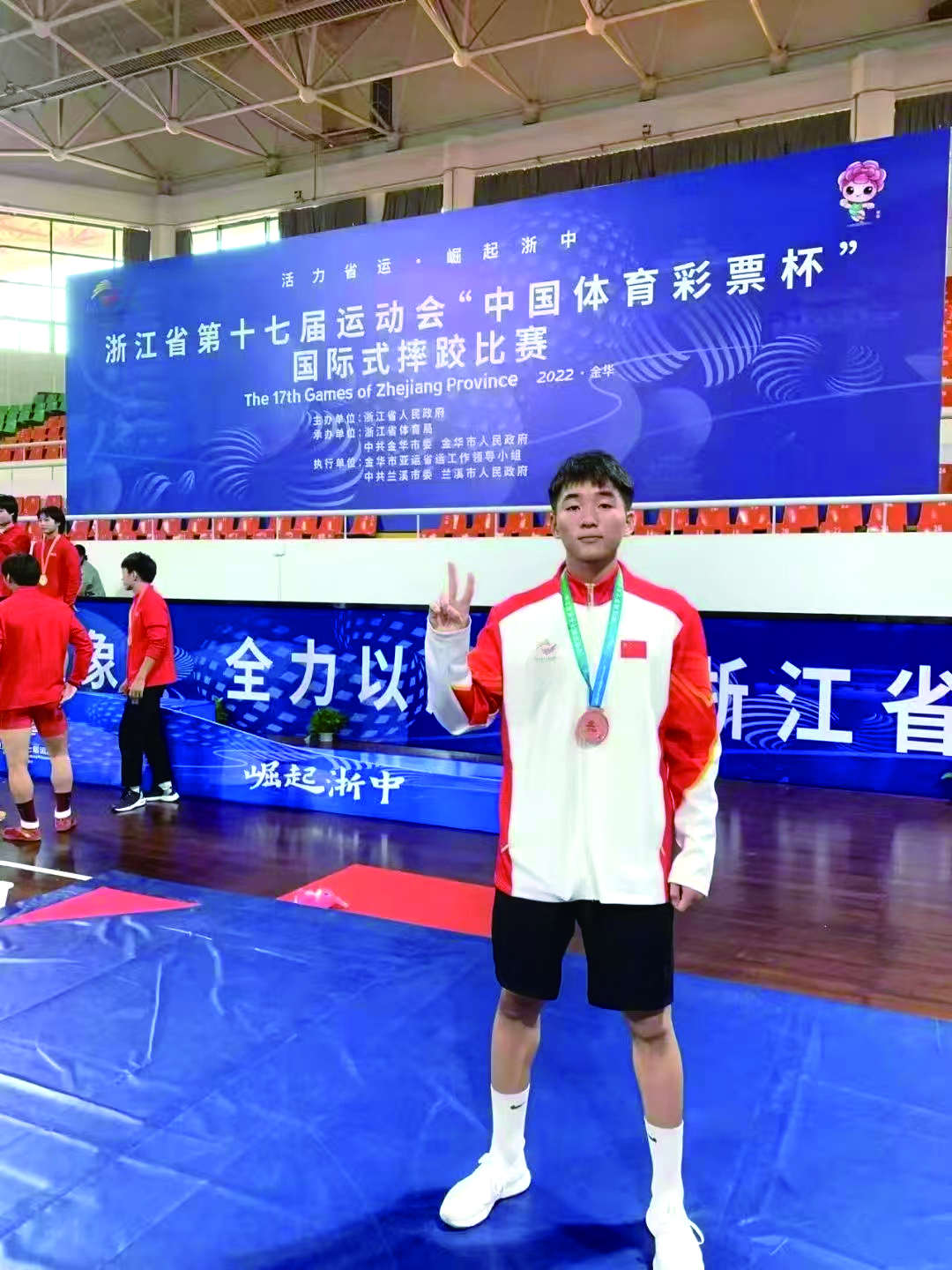 刘嘉威曾是这个家庭的骄傲。说起儿子的过去,董合影满眼都是光。他们是安徽省阜阳市太和县人,为生计来到金华打拼。刘嘉威从小比较胖,为给儿子减肥,董合影让他练习摔跤。没想到,儿子很争气,越学越好,还进了体校,走上了专业路子,并在浙江省第十七届运动会上拿下国际式摔跤自由式男子甲组70KG级的铜牌。