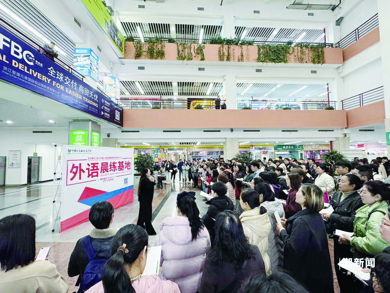 昨日,2025年义乌国际商贸城外语晨练培训开课。去年,义乌老板娘清晨集体学英语的视频走红网络。
