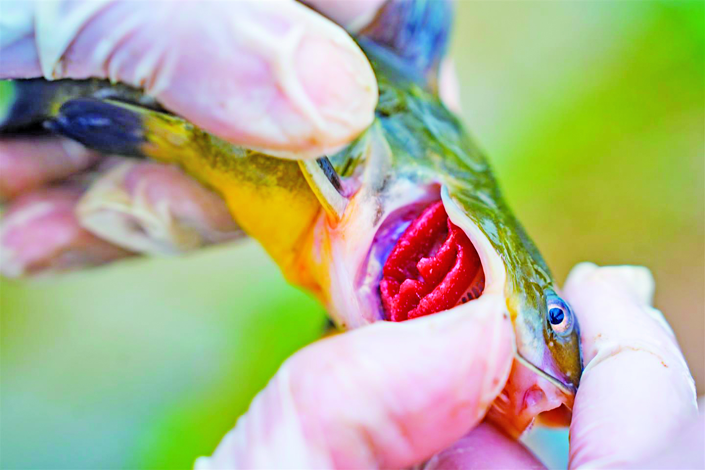 朱韶华在加热大棚里,仔细检查黄颡鱼里稚蚌寄苗的孕育情况
