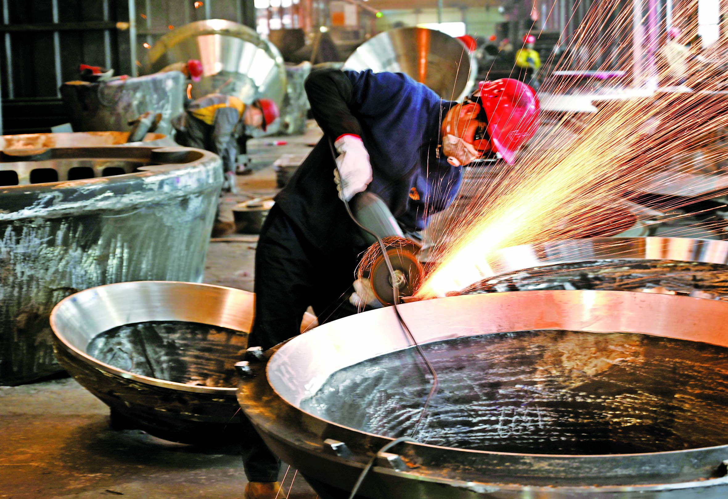 3月17日,位于武义县熟溪街道的浙江武精机器制造公司铸造、打磨等车间机床飞转、钢花四溅,工人开足马力生产外贸出口的矿山机械产品,力争实现首季“开门红”。 本报记者 张建成 李云升 文/摄