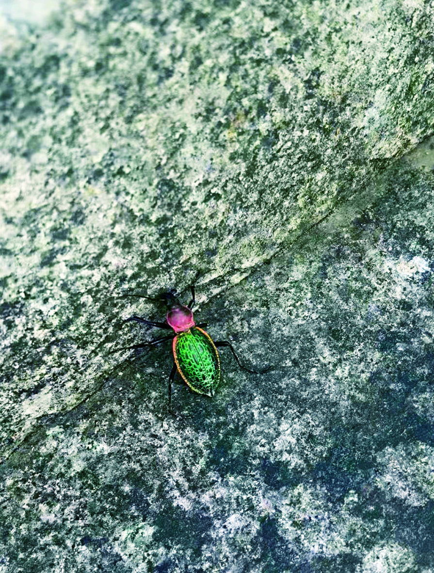 “原来这是拉步甲,是国家二级重点保护野生动物。”3月19日,大盘山管理局科教处工作人员董浩在磐安县博物馆后山的台阶上,意外发现了一颗“绿宝石”。这颗“绿宝石”其实是一只色彩艳丽、形态独特的昆虫,是国家二级重点保护野生动物拉步甲。巧的是,董浩前一天刚在博物馆整理过拉步甲的标本,没想到第二天就见到了。