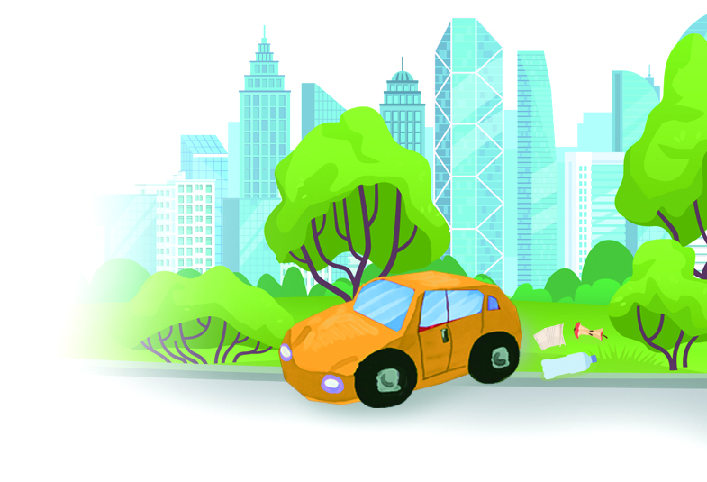 绿化带堆满垃圾杂物