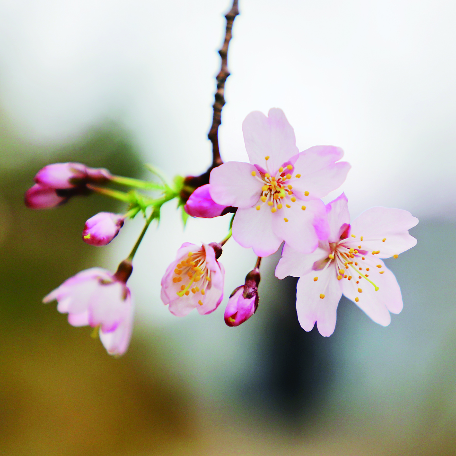 从时间上来看,钟花樱开花较早,花呈钟形,下垂,颜色多为深粉红或红色,花期在早春2—3月,常先于叶片开放;迎春樱是我国特有的野生樱花品种,花色以淡紫红、粉红和白色为主,迎春樱的花朵较小,整体花型疏朗优雅,常先于叶片开放,花期3—4月,果期4—5月,多生长在山谷林中或溪边灌丛中;山樱花花色多样,有白色、粉红色等,花朵较小但数量众多,花期4—5月,核果紫黑色,果期6—7月,广泛分布于山林间。