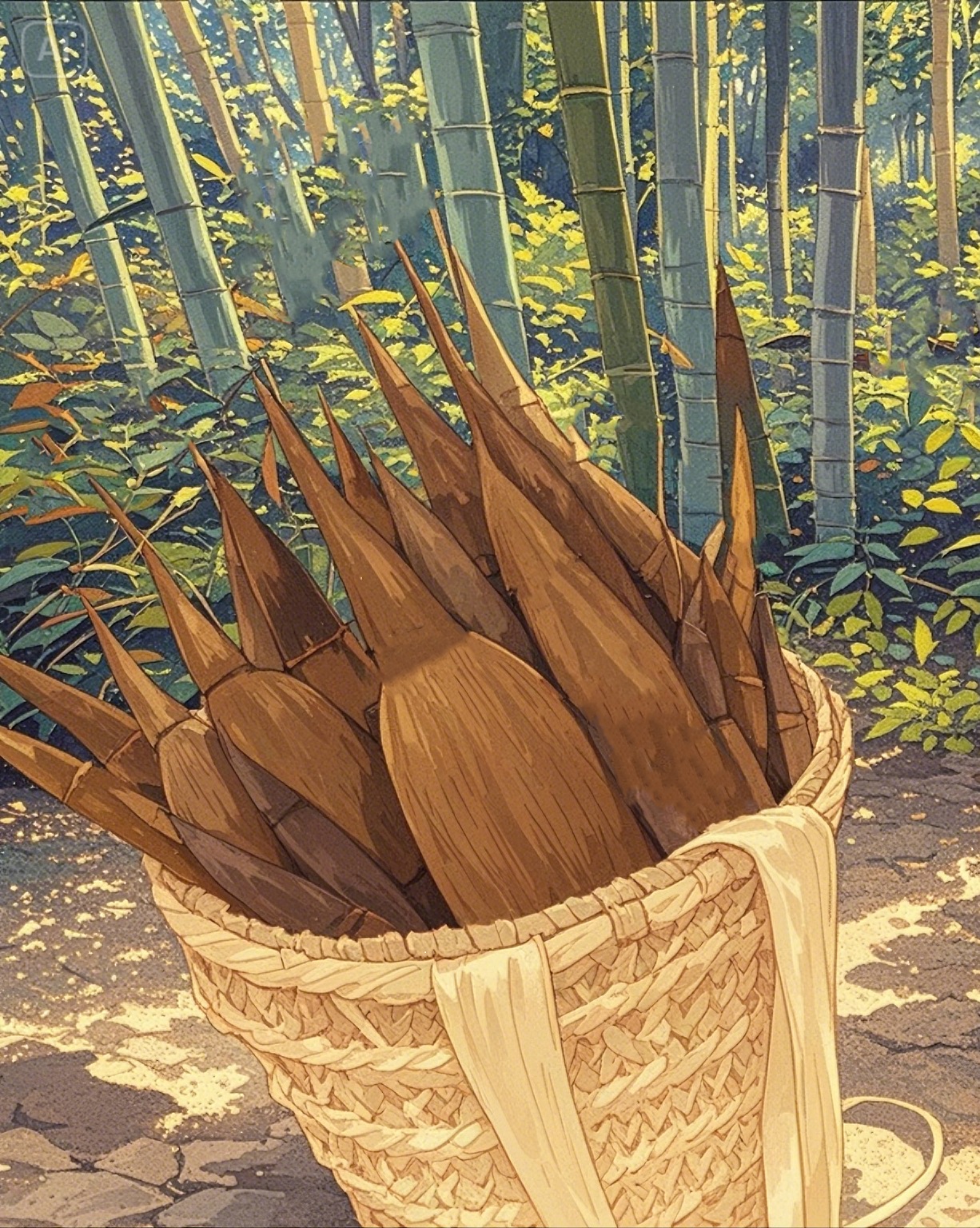竹笋外面裹着一层层笋壳。笋壳像一位慈祥的母亲,紧紧地护着襁褓中的笋芯。从笋衣到笋壳,只需短短几天时间,便完成了这位母亲的历史使命,走完了她一生的旅程。