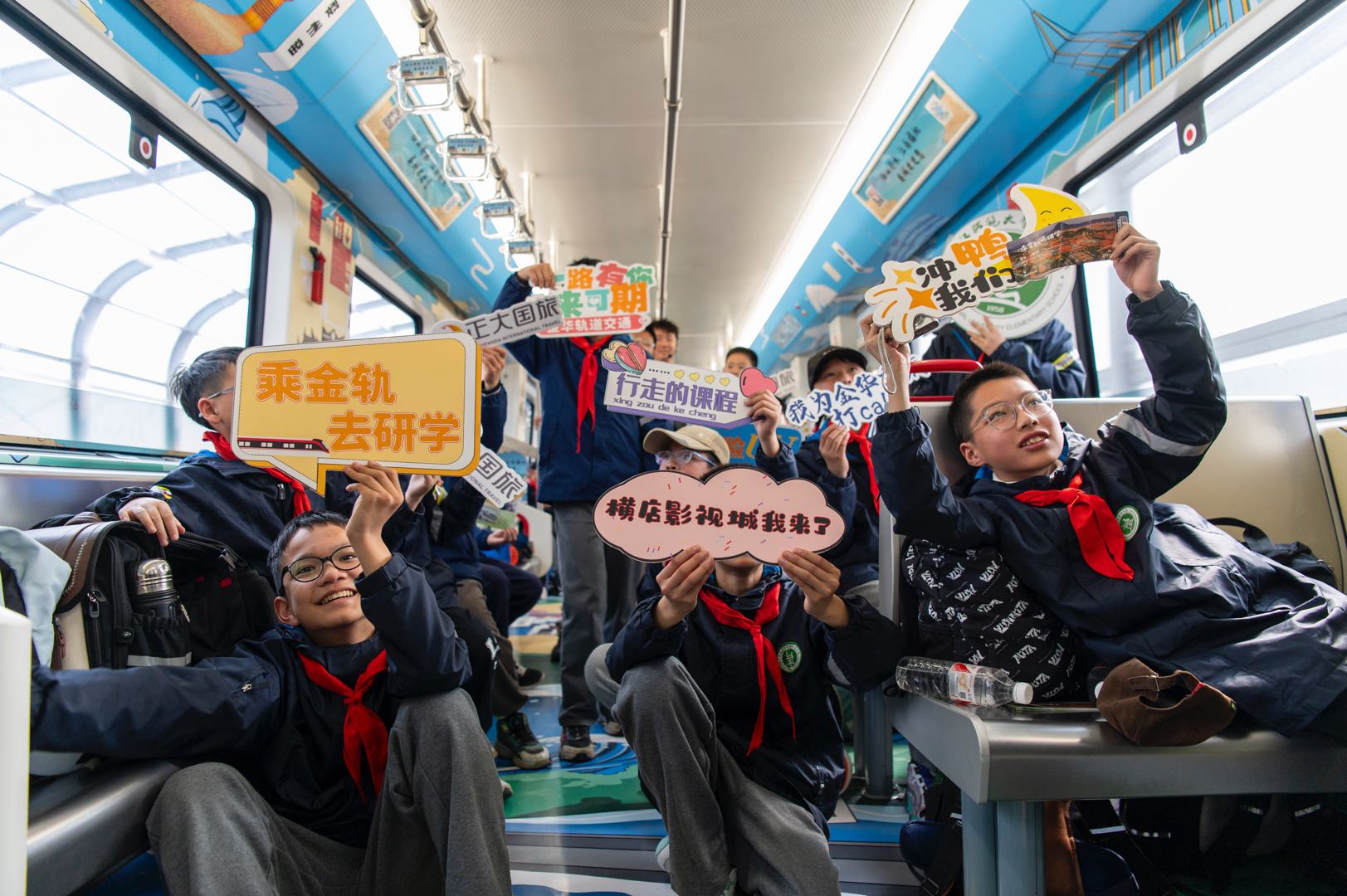 4月3日上午8时13分,“文旅号”研学专列缓缓驶出轨道交通金华站,载着浙师大附小的280名学生驶向明清宫站,这标志着全省首条常态化跨县域轨道交通研学专线正式开通。