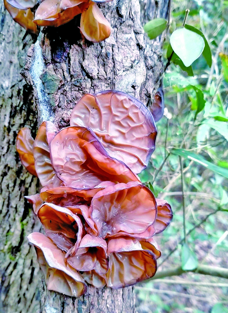 到了四五月,还有野生木耳可以采摘,这些野生木耳长在柿子树的树干上,肉特别厚实。