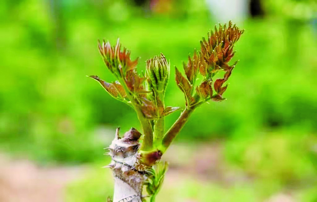 还有一种叫楤木的嫩芽,用水焯过后,可以凉拌吃。因为楤木身上长满了刺,所以有个特别的名字叫“鸟不踏”。尽管是连鸟都不踏的植物,长出的嫩芽却很美味。