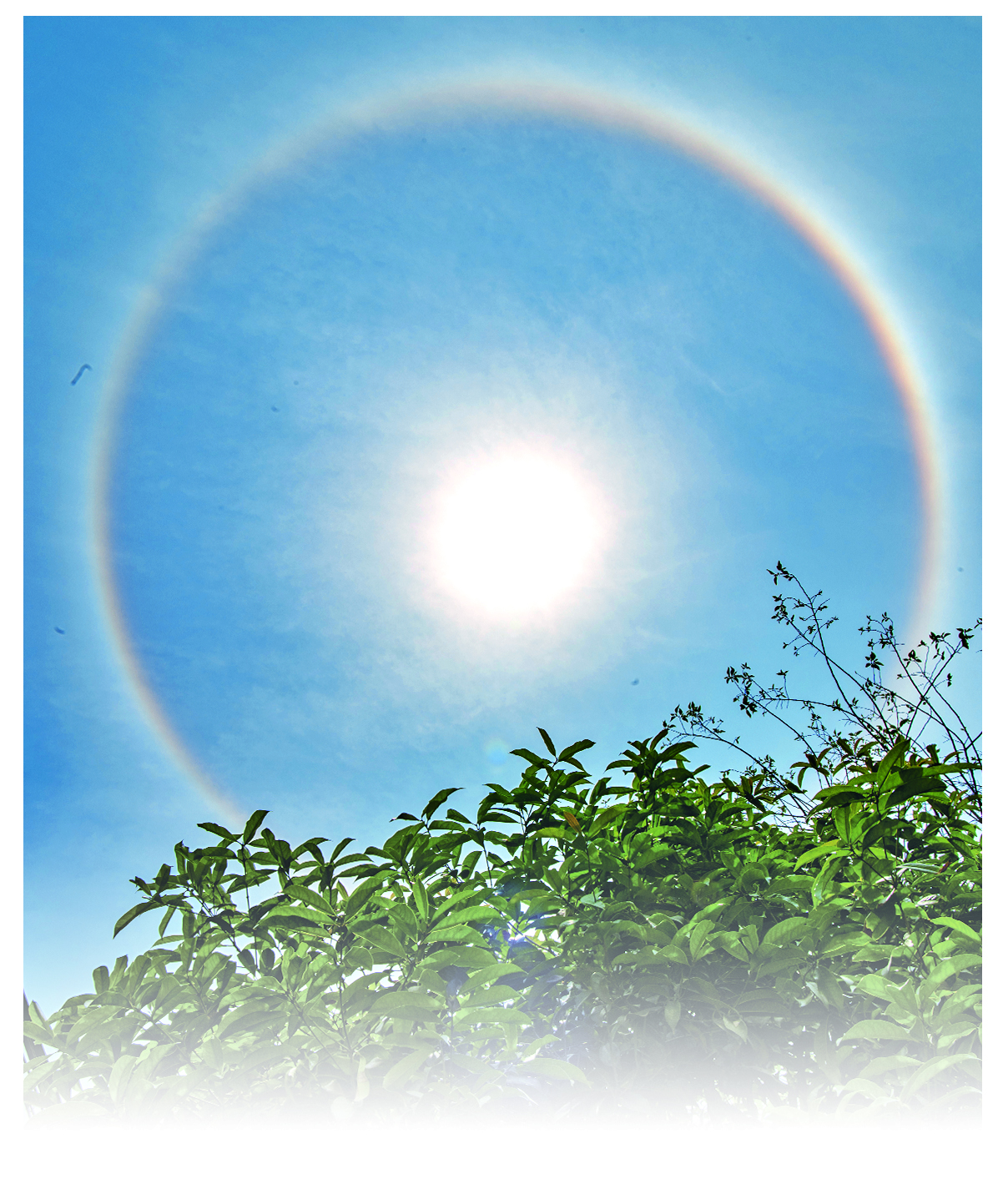“快抬头,看到自带光环的太阳了吗?”昨天,微信朋友圈里,不少网友晒出照片。照片里,太阳自带了一个肉眼可见的“圈”,就像戴上了美瞳,很耀眼很美丽。