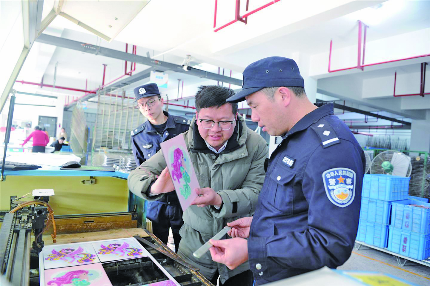 近日,东阳市公安局南市派出所民警来到辖区一家外贸工艺品企业走访,“把脉问诊”指导做好安全生产等工作,为企业排忧解难。 蔡伟华 摄