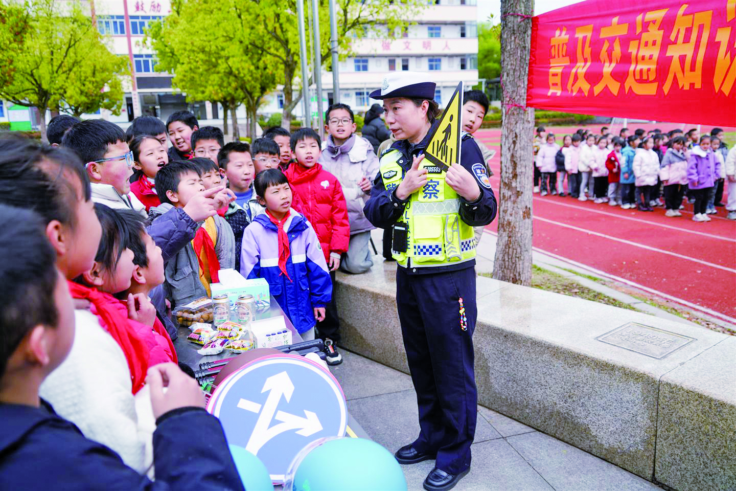 市公安局交通管理分局金东大队推出交通安全“互动课堂”,带领学生学习认识各种道路标识标牌 吴程俊 摄
