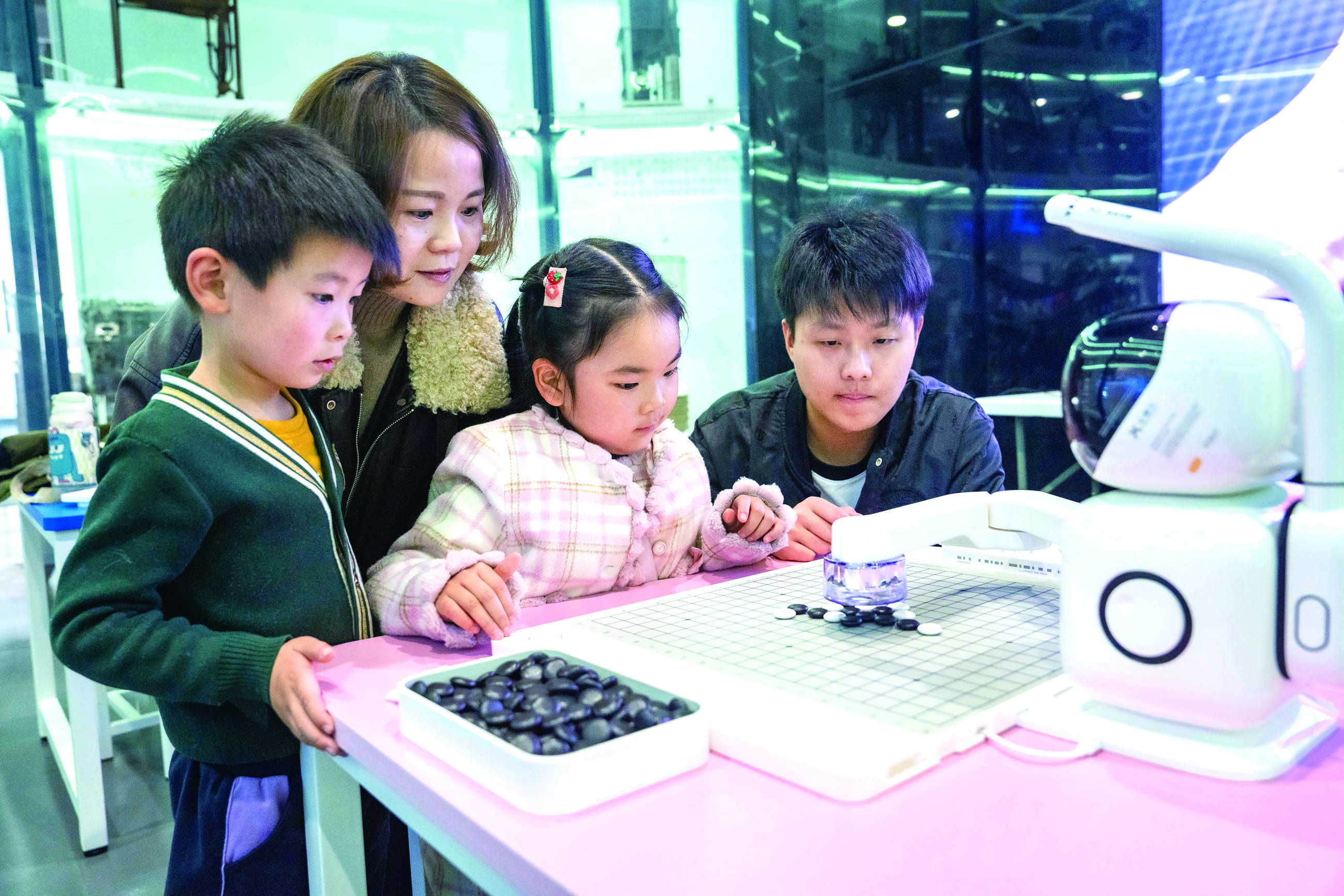随着人工智能技术的飞速发展,各个领域都在发生深刻变革,教育领域也不例外。 在市科技馆,牵着机器狗进行科学实验;在学校科技节,体验脑控赛车、脑控机械臂;在VR科技体验区,戴上VR眼镜穿越时空,还有与对弈机器人“对战”,利用平板控制机甲机器人,完成数字设计和陆地作战任务……孩子们体验各种人工智能产品,解锁科技童年,点燃创新热情。 本报记者 傅俊 胡肖飞 陈业 摄