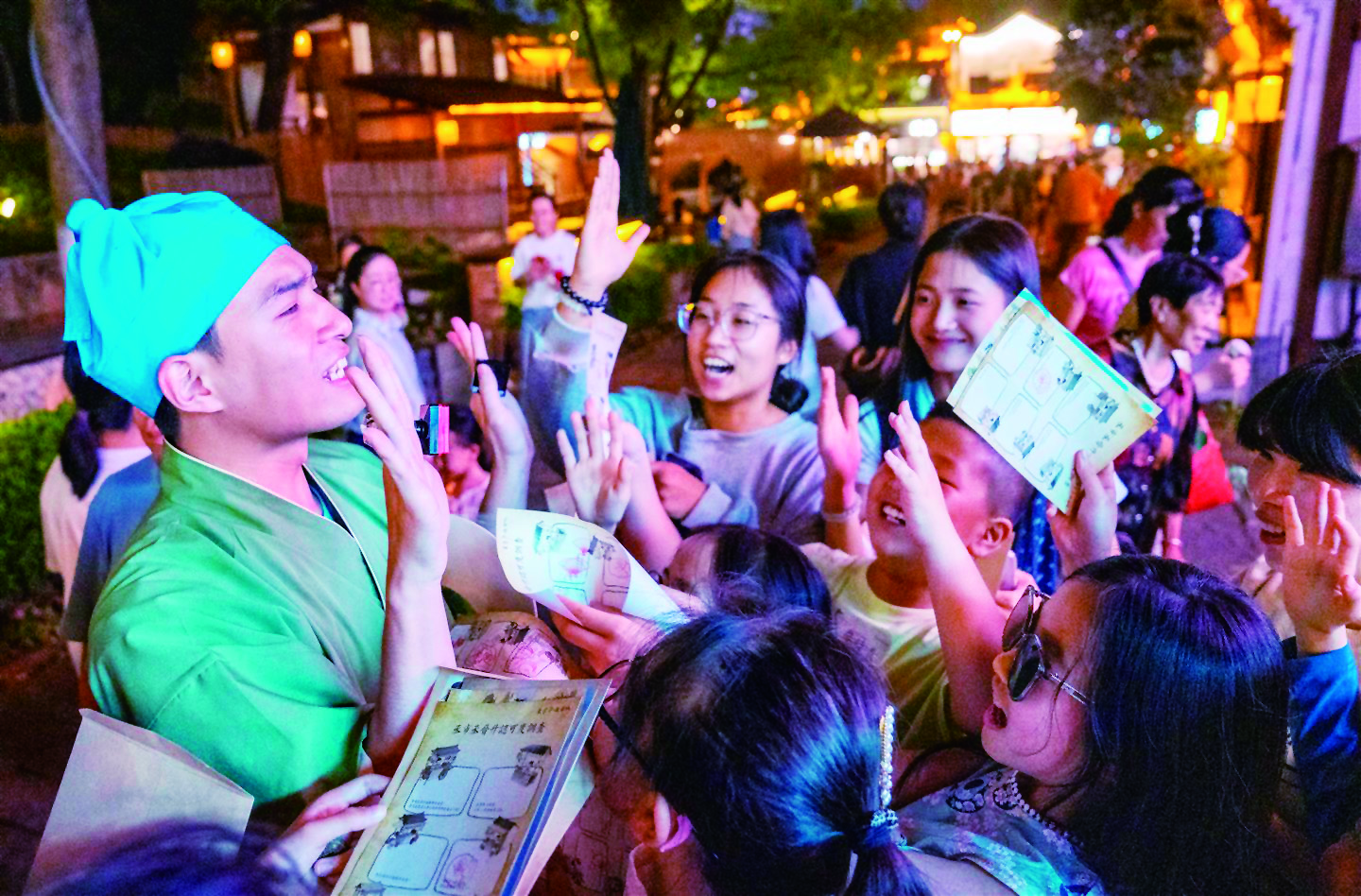 婺州古城酒坊巷里,从一个铜板开始城主的逆袭路,真人实景剧本杀氛围感十足;当暮色浸染婺江畔,霓虹点亮三江六岸,夜市便苏醒成流动的星河;美食街区佳肴汇聚、特色饼街香气四溢,开启一场舌尖上的烟火盛宴……这个“五一”,婺州古城的非遗市集、婺剧大戏、古城演艺、文庙国风雅集、宋韵婚礼白天黑夜轮番呈现,通过文旅深度融合,打造沉浸式消费新场景,让游客体验感满满。数据显示,今年“五一”,婺州古城以38.5万人次的接待游客量创历史新高,较去年同期增长近50%。