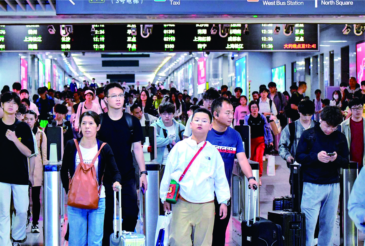 5月5日,在铁路金华站出口处,返程客流迎来高峰。铁路部门精心组织,在热门方向、区段和时段增加运力投放,加强站车服务,保障旅客平安有序返程。 本报记者 李建林 文/摄