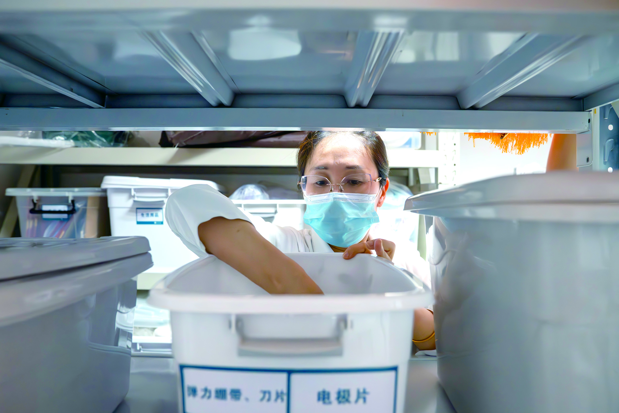 “五一”假期,金华市中心医院的护士姜甜甜没有休息,而是前往预约患者家中,为其更换导尿管。