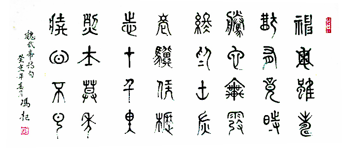 “……老骥伏枥,志在千里;烈士暮年,壮心不已。”这幅书法作品的字体为篆书,内容是曹操的诗《龟虽寿》,落款为冯起,写于1983年。李建华说,该作品是金华解放后的首任地委书记冯起写给老战友李子正的,后者正是他的父亲。字里行间,是一位老一辈共产党员的满满初心。
