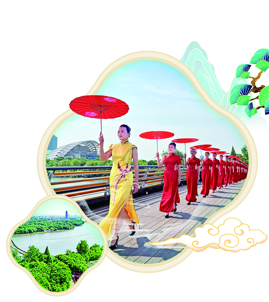 5月11日上午9时许,市区彩虹桥上出现一幅流动的美丽画卷:近千名身着各式各样旗袍的佳丽,手持大红色油纸伞,踏着轻盈的步伐,伴着悦耳的音乐声徐徐而行,吸引了不少市民驻足观看。