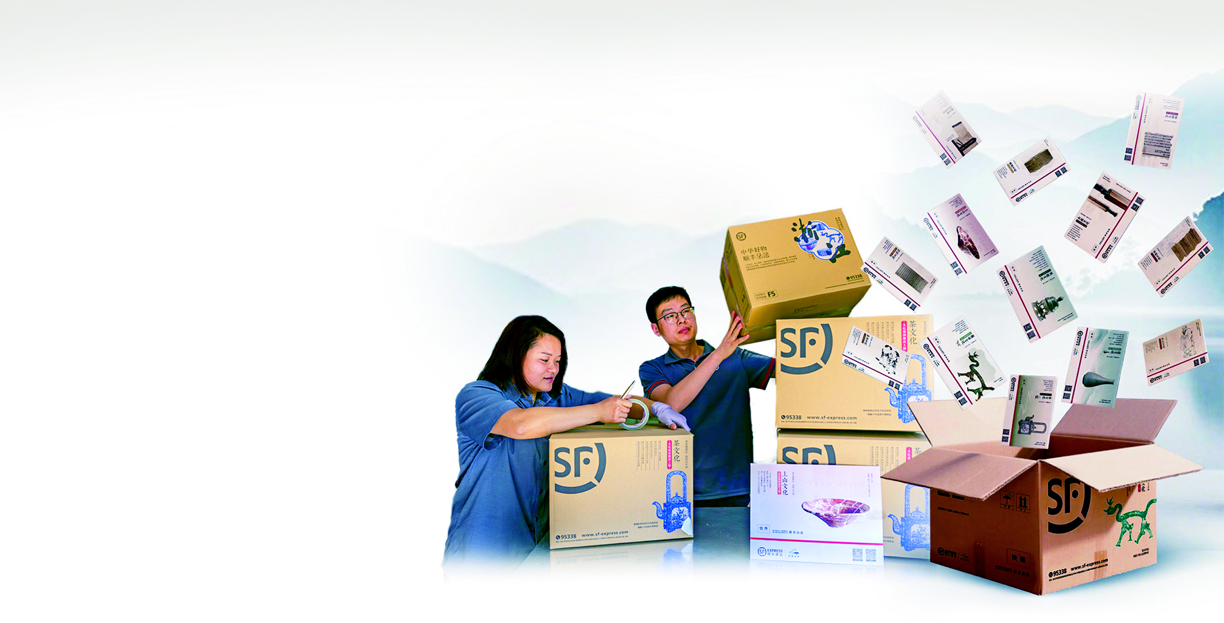 近日,浙江省文化广电和旅游厅与顺丰速运跨界携手,发布了全球首款“诗画浙江×顺丰速运”文化联名快递包装。这些包装袋和包装盒将化身移动的浙江文旅名片,通过一次次传递,送达全球各地,走入寻常百姓家。
