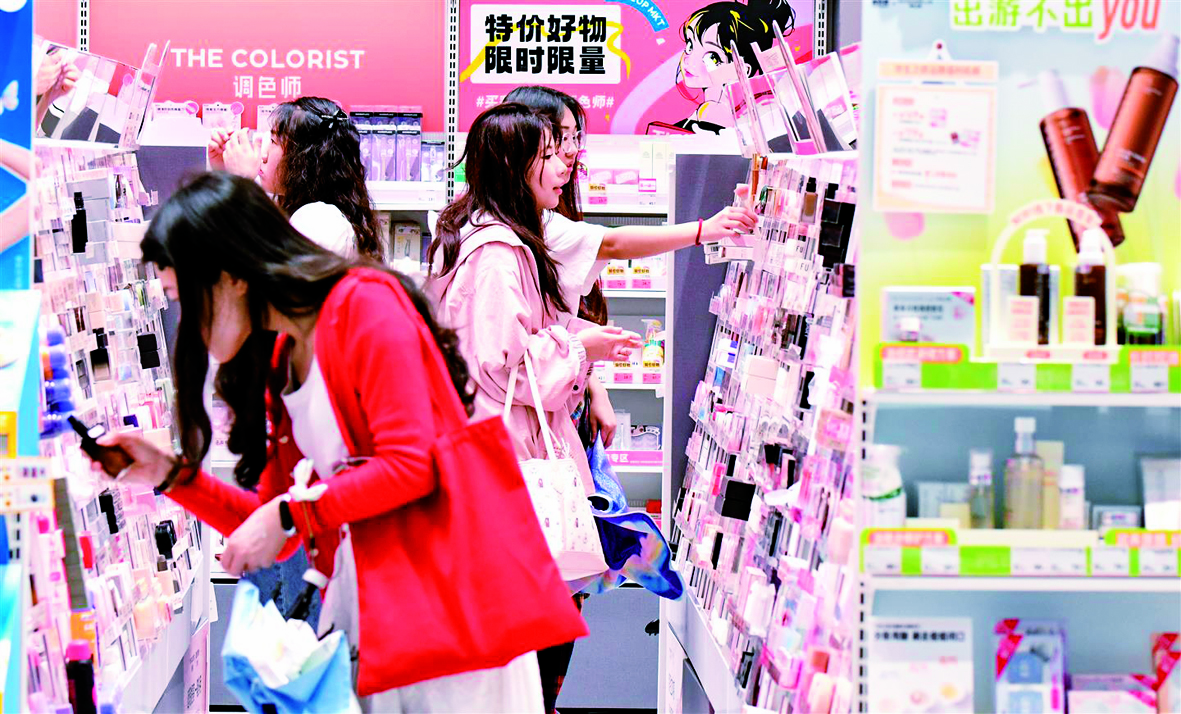 随着夏天到来,防晒、面膜、保湿等护肤品迎来销售高峰。图为昨日,市区一彩妆店内,顾客正在挑选商品。 本报记者 李建林 文/摄