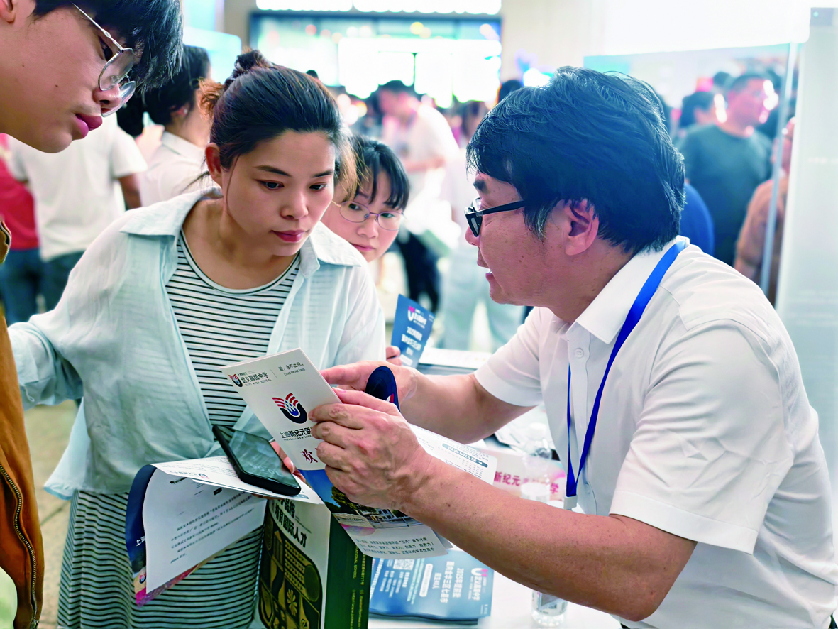 记者发现,现场还有不少组团前来咨询的家长。在浙江金华第一中学展位前,6位女士手持宣传单页,围绕中加班展开热烈讨论。“我们想对比不同学校的课程设置和升学方向,多了解才能帮助孩子选对路。”其中一名家长表示。