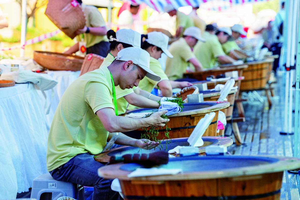 昨日,2025年金华市茶叶加工职业技能竞赛暨全省农业职业技能大赛预选赛(金华市炒茶大师赛)在市区西市街举行,来自各县(市、区)的制茶能手齐聚一堂,在指尖与茶叶的碰撞中展开技艺比拼。 本报记者 徐桢瑾/文 楼冀阳 时宽兵/摄