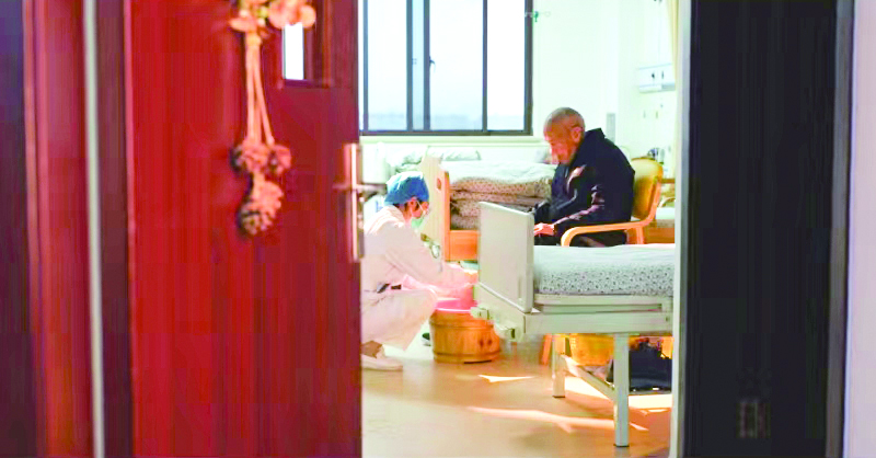 89岁的方老太太因脑梗死后遗症入院时,病情十分严重。她全身上下共有13处压疮,多为三级、四级且伤口溃烂,其中臀部最大的一处压疮直径达10厘米×12厘米。老太太左侧偏瘫,因吞咽障碍导致严重营养不良。入院后,医护团队一方面进行常规护理和压疮治疗,坚持每天清疮换药;另一方面组织多学科专家讨论,为其制订营养、认知等方面的个性化治疗方案。在医护人员悉心照料下,方老太太13处压疮已经全部愈合,身体状况明显改善。刚入院时,她因中风偏瘫导致身体佝偻、四肢挛缩,如今已能坐在床上看电视,面貌焕然一新。