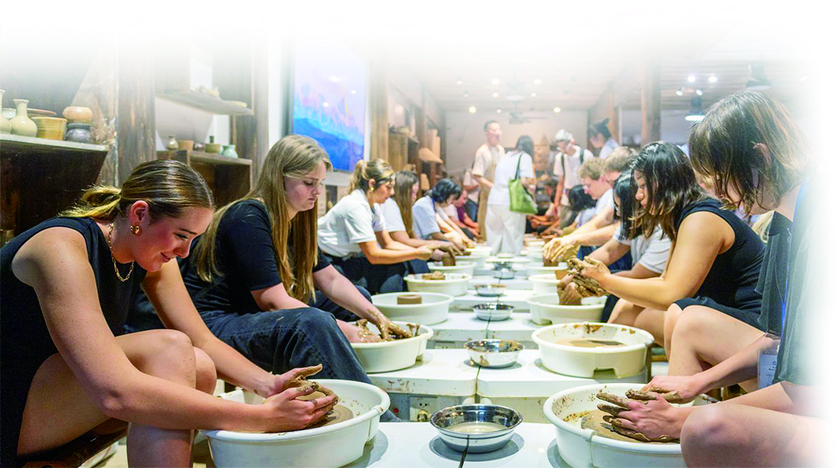 婺州窑体验馆内,亚利桑那州立大学学生格雷森·莱昂纳多进行了他人生中首次婺州窑制作体验:“太难了,看老师操作时很简单,自己上手完全不一样。”对于如何将泥固定成漂亮的形状,美国师生的统一反应是“眼睛学会了,手却没学会”。