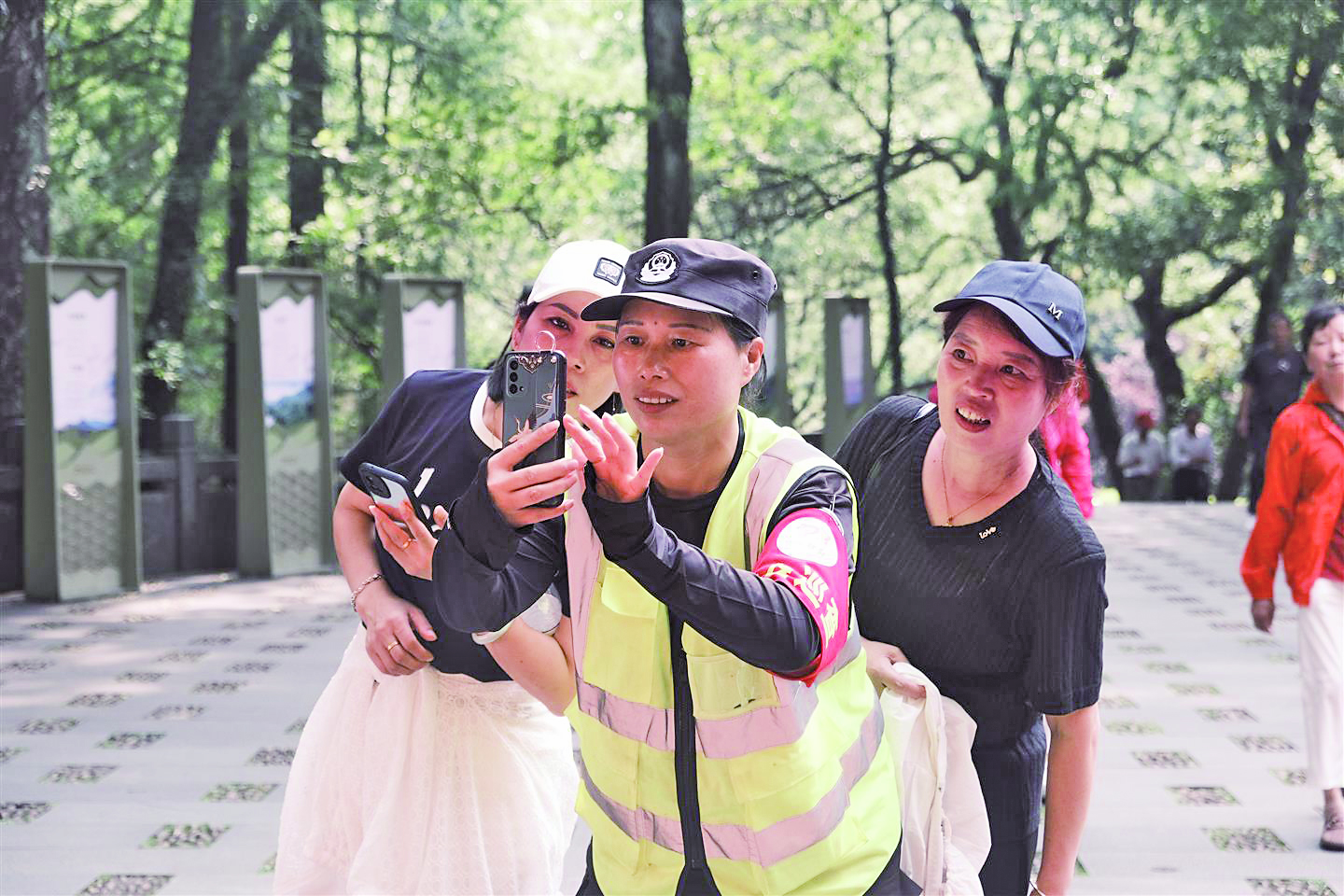 夏日,金华双龙洞风景区迎来众多游客,景区内身着统一服装的志愿者格外亮眼。他们有的耐心为游客指引路线,有的细心解答游客关于景点历史的疑问,还有的专门给游客拍照打卡。志愿者们始终面带微笑,热情服务,成为景区一道亮丽的风景线。 本报记者 俞佳妮 摄