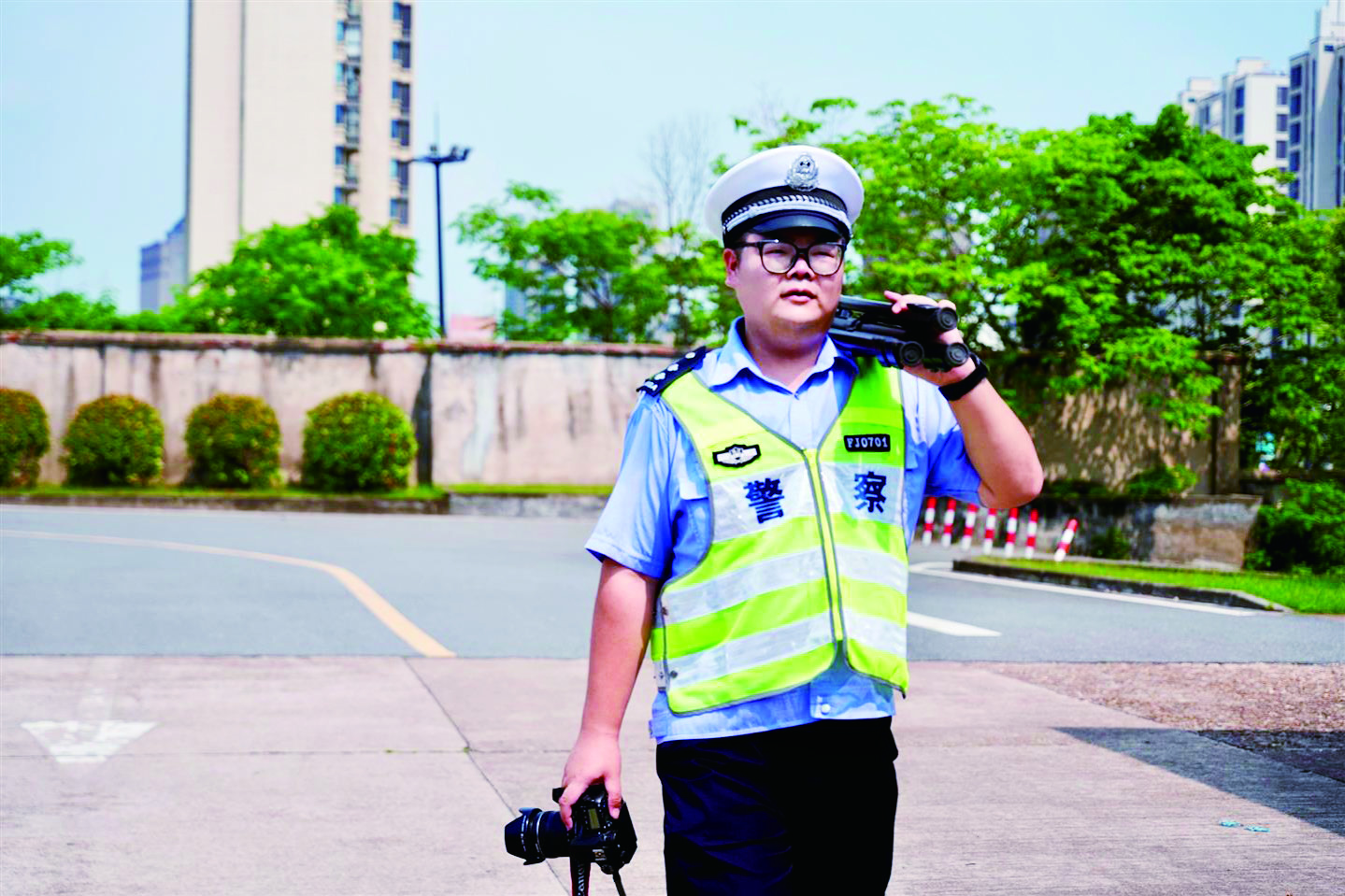 宣传绝非旁观。凌晨两点的街头雾气弥漫,董剑浩已随警出动,镜头对准查处酒驾的紧张现场;暴雨如注,他用雨衣裹紧摄像机,捕捉到了辅警背着老人涉水而过的温暖瞬间;深夜11点的办公室,他反复观看执法记录仪视频,逐帧筛选,只为捕捉警民之间那最动人的眼神交汇。“宣传要带着体温去记录。”当看到自己拍摄的战友那张布满勒痕的“口罩脸”登上《人民公安报》等媒体时,他真切感受到了文字与镜头沉甸甸的力量。“只要路上还有需要守护的人,我的笔就不会停下。”这份热爱,是他坚守的基石。
