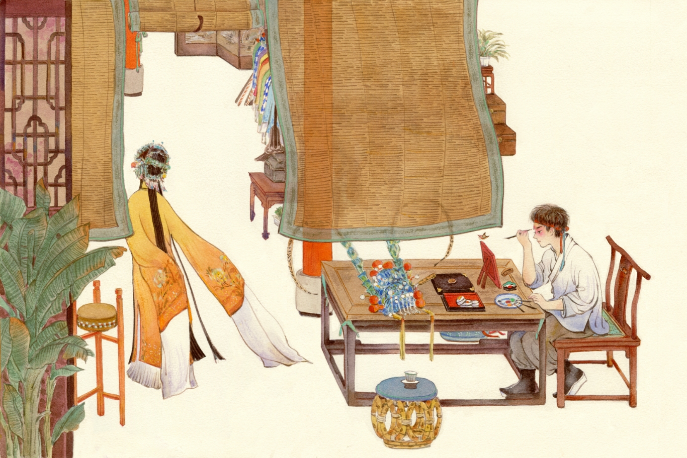 我见过最小的越剧团,团员只有一个人。没有后台伴奏,没有戏服化妆,演员手里仅拿着两块毛巾,一个人要演多个角色,不断地在台上走来走去。一场戏演下来,看他已经筋疲力尽,喉咙都哑了,大家连忙叫他吃生鸡蛋。
