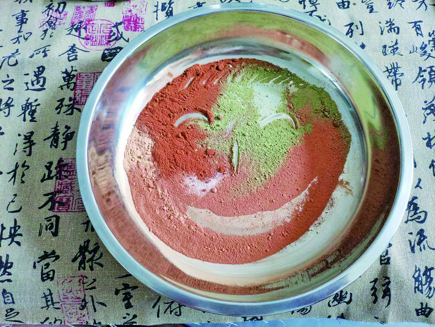 接着,称香粉和黏粉,取荔枝壳粉、零陵香粉、檀香粉、龙脑粉,再加上楠木黏粉进行混合调制。揉香盆可以选择不锈钢、陶瓷或玻璃材质的,混合的过程一定要搅拌均匀。