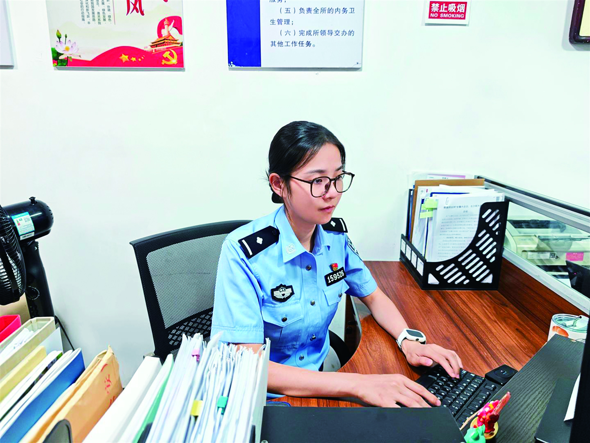刘璐莹的“战场”远不止办公室这一方天地,街头巷尾同样处处有她忙碌的身影。除了日常内勤工作,她还兼任辖区社区民警,安全检查、反诈宣传、巡逻走访……每一项工作,她都全力以赴,奔波在服务群众的第一线。