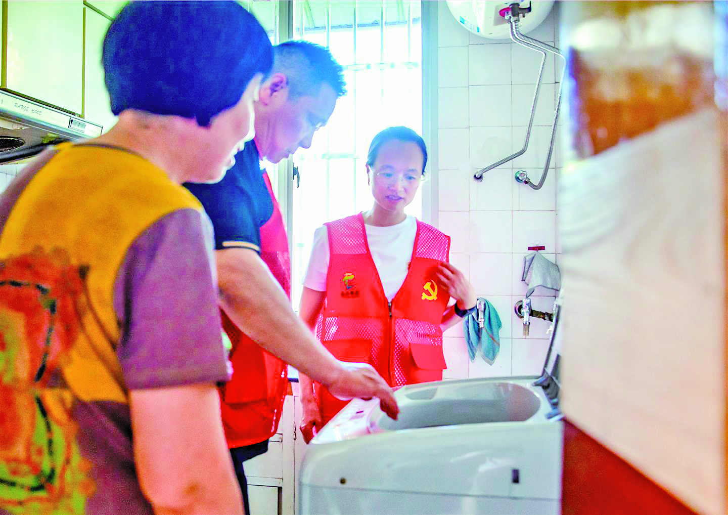 连日来,持续高温,兰溪市云山街道枣树社区“枣管家”志愿队为高龄、独居、失能及残疾老人开展上门服务,守护老人安全度夏。 本报记者 李建林 文/摄