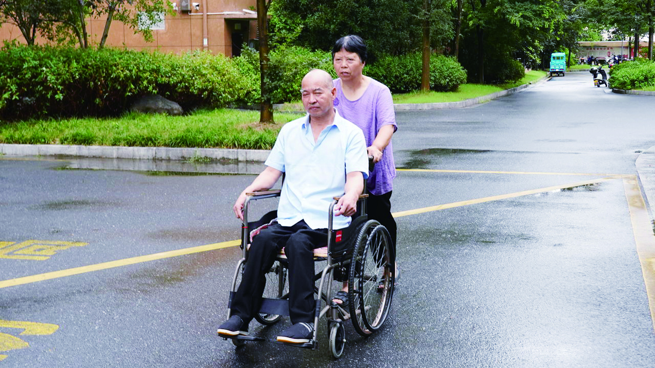 走进被石元竹打理得窗明几净的家时,张柏均正借着辅助工具练习站立,这是他日复一日的康复训练。天气好的时候,石元竹会推着他去楼下公园逛逛,呼吸新鲜空气。“推他出来透透气,身上清清爽爽,人家走过也不会嫌有味道。”石元竹笑着说。这朴素的体面背后,是她日复一日的辛劳:翻身、按摩、处理大小便……