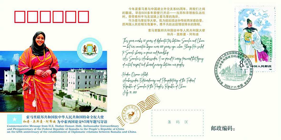 作为索马里驻华大使,我为能延续这份传统而深感自豪。愿两国人民在相互尊重中,携手共赴这段情谊绵长的旅程。”落款时间是2025年7月10日。